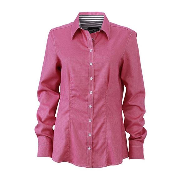 Outer fabric: 95% cotton, 5% elastane.Fine, elastic poplin with Easy-Care finish, easy to iron.Inside of collar and cuffs in contrasting dot-pattern.Lightly waisted, darts at the front and back.Cuffs with 2 buttons.Rounded hem.
