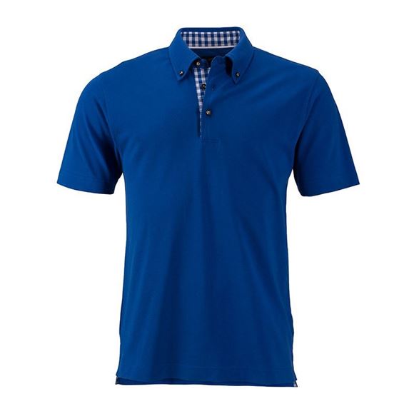 Outer fabric (195 g/m²): 100% cotton.Fine piqué-fabric.Collar stand, inside of button placket and side slits in check pattern.Buttons in traditional costume look made of imitation horn.Half moon tone in tone.Ready-made button-down collar, 3 buttons.