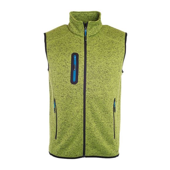 Outer fabric (280 g/m²): 100% polyester.Soft, warm, easy-care fabric in melange look.Outside knitted look, inside roughened, fluffy and soft.Figure-hugging division seams.Lateral zipped pockets, breast pocket.Contrasting inset on hem and armhole.