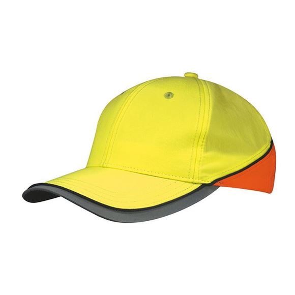 Outer fabric: 100% polyamide.2 embroidered ventilation holes .4 stitching lines on the peak.Contrasting piping around the cap.Laminated front panels.Padded satin sweat band.Reflective velcro fastener and border around the peak.