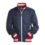 Lightweight jacket, rib cuffs and waist in colours of the flag, two inset pockets on outside; unpadded inner.Ιt is also water resistance and windproof and has breathability.Composition: Νylon 210T 100% Nylon.Weight: 65 gr/mq.Washable at: 30°C.